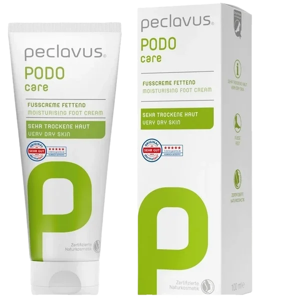 Peclavus PODOcare Moisturising Foot Cream palauttaa pehmeyden ja hyvän olon tunteen halkeilleelle ja erittäin kuivalle iholle. Tehokkaasti hoitava ja pehmentävä mehiläisvaha sekä antibakteeriset kamferi ja methol yhdessä suojaavat ja hoitavat ihoa. Ei sisällä parafiiniöljyjä. Saksalaista sertifioitua luonnonkosmetiikkaa.